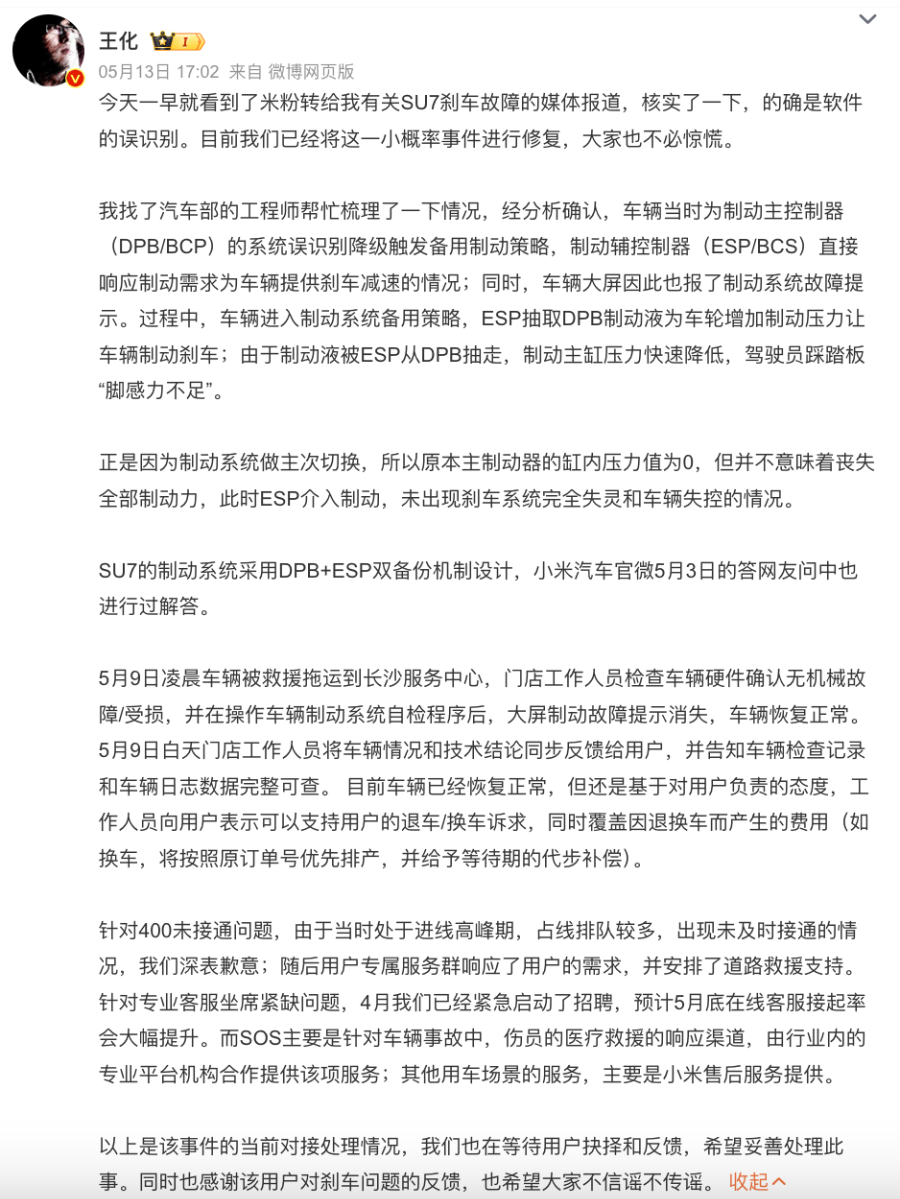 (原标题:SOS 1秒接通?小米汽车副总裁:从未宣传,系造谣诋毁)